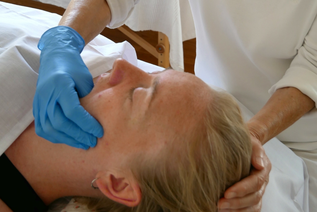Praksis på kurset: Vi arbejder med massagegreb og afspændingsgreb for både selve kæbeleddet og for hals og skulderåg, som indgår i kæbeledsproblemet (TMD, temporo-mandibulær dysfunktion). Ved nogle af grebene bruger vi handsker for at arbejde sikkert inden i munden.